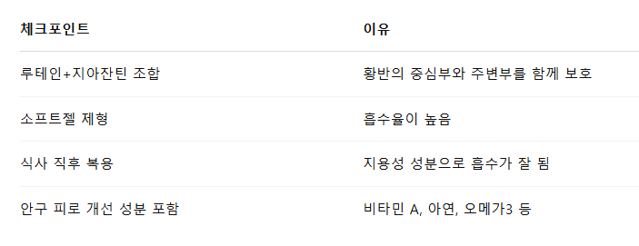 루테인 제품을 고를 땐 아래 사항을 확인하세요: